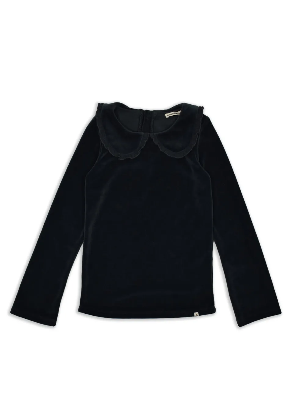 Heerlijk Zachte Longsleeve Met Een Lieve Peter Pan Kraag. Mooie Zachte Zwarte Velvet Stof, Heerlijk Draagbaar En Ook Feestelijk.