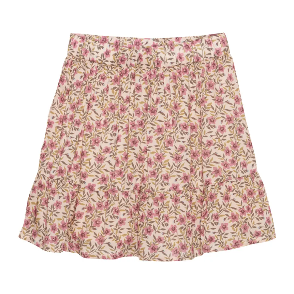 Wat Een Mooi Zwierig Rokje Met Bloemetjes Print En In De Stof Mooie Subtiele Gouden Glitters. De Romantische Roze Bloemetjes Maken Het Een Lief Geheel En Het Draagt Heerlijk Comfortabel Met Elastiek In De Taille.
