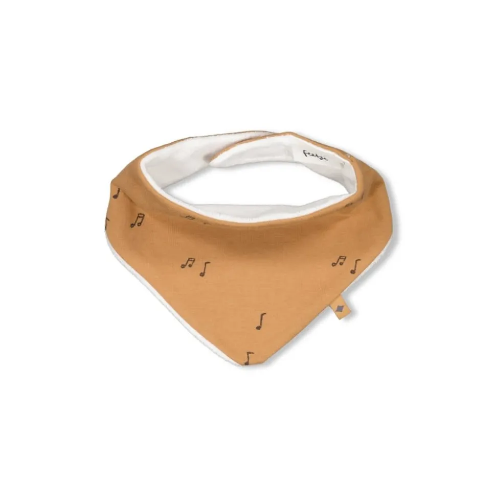 Leuk Punt Slabbetje Dat Een Mooie Toevoeging Is Aan Een Outfit, Maar Vooral Perfect Werkt Tegen Flink Kwijlende Baby’S. Het Slabbetje Heeft Een Camel Kleur En Muzieknootjes Printje.