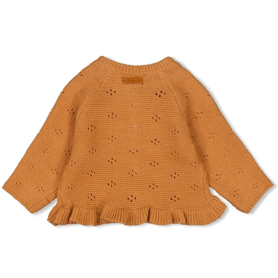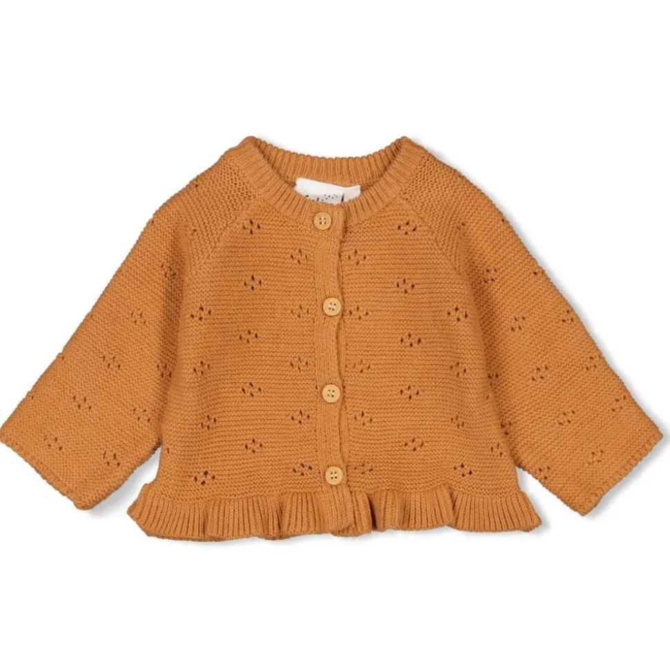 Allerliefst Pointelle Vestje Met Ruffle Randje Onderaan. Een Lief Ingebreid Patroontje En Houten Knoopjes. Wat Een Snoepje!