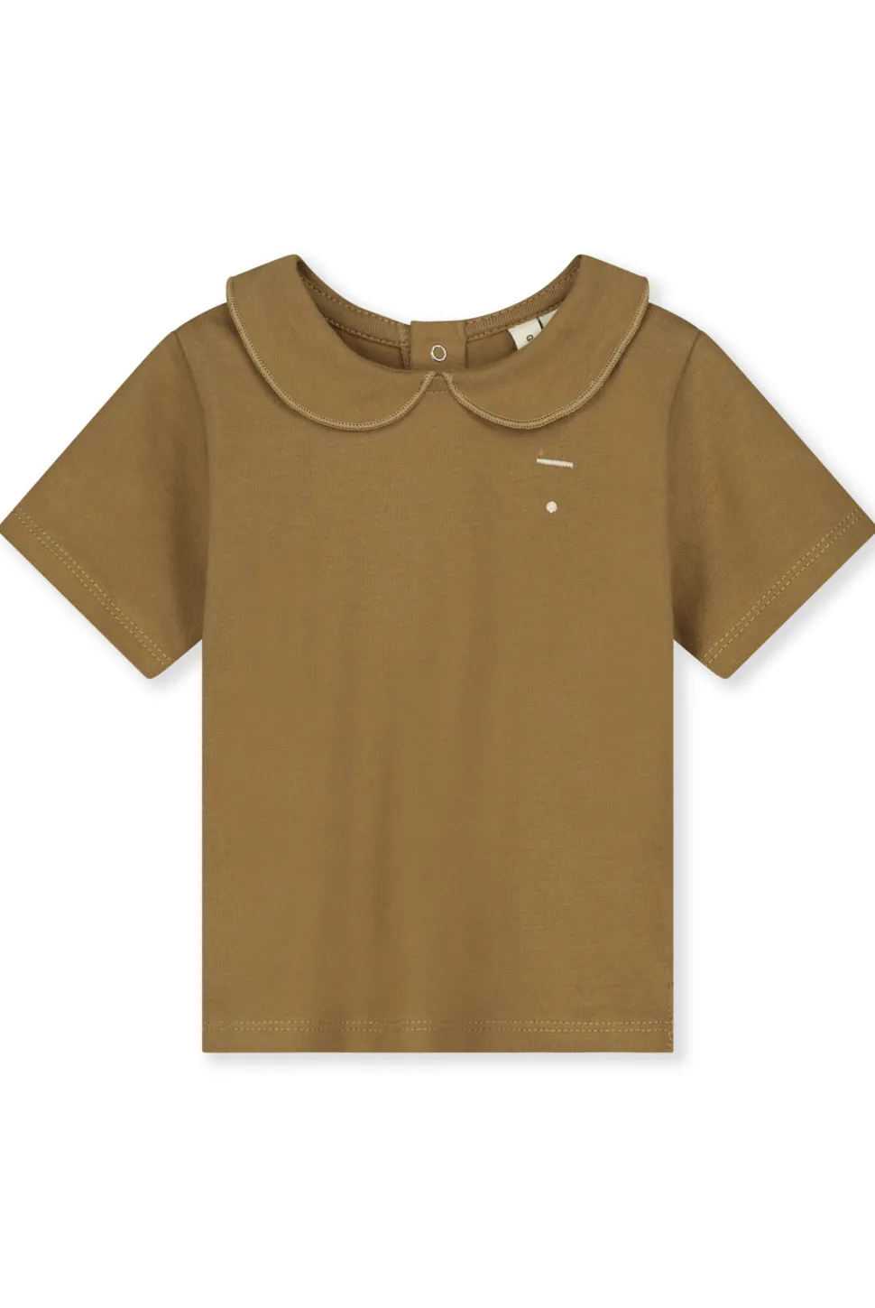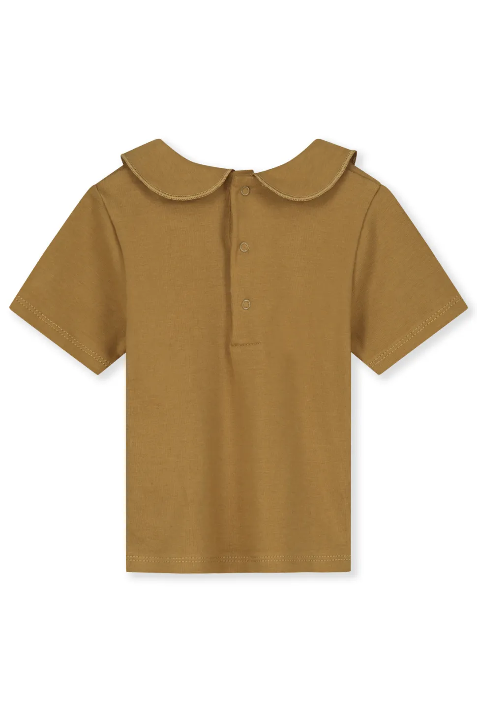 Oh Cute! Een Super Zacht T-Shirt Met Mooi Kraagje, Lieflijk En Toch Stoer Door De Peanut Kleur. Korte Mouw, Drukknoopje In De Nek. Logo Gestikt Op De Borst.