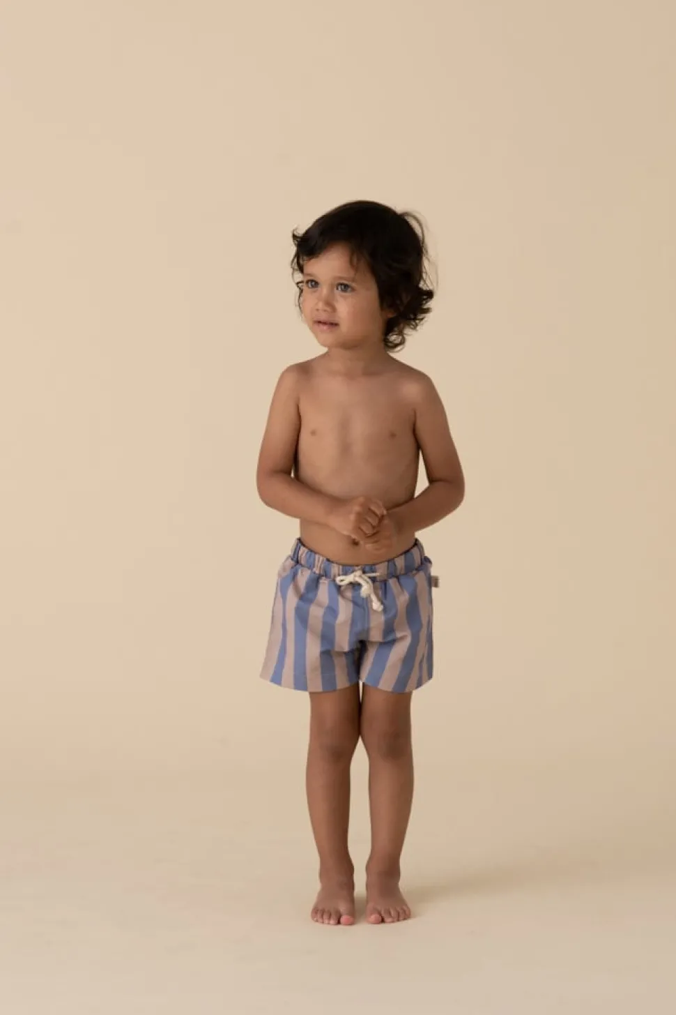Supercool Zwembroekje Van House Of Jamie Met Verticale Strepen In Blauwe En Beige. Dit Kind Gaat De Show Stelen Bij Het Zwembad 🙂