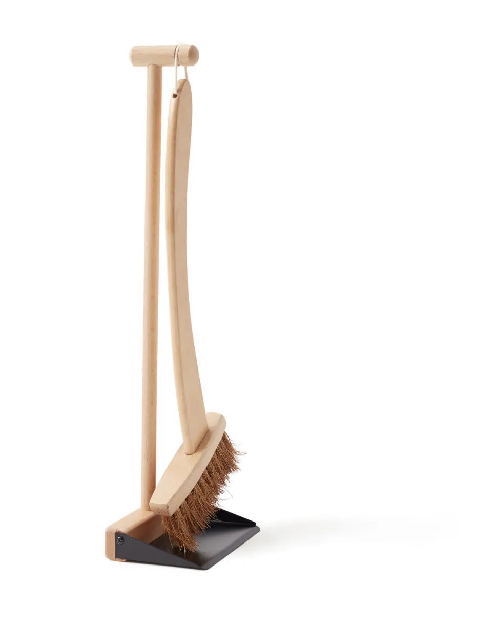Stoffer En Blik Met Een Lange, Houten Steel.