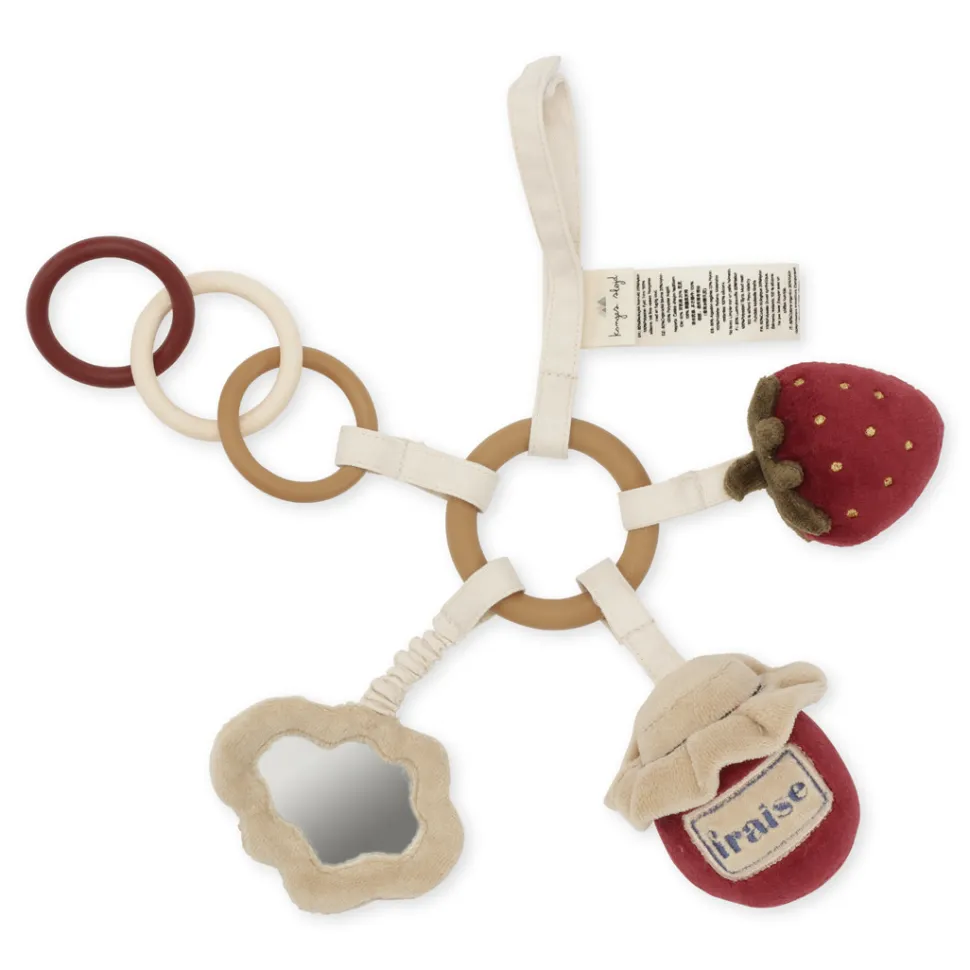Activity Rings Made In 100 Percent Silicone, Safe For Babies To Chew On. The Rings Have Organic Cotton Straps With Soft Figures Added On To Them, Made In Organic Cotton With Recycled Polyester Filling Inside. One Ring Is Textured And One Strap Is Elastic, Designed For Babies To Develop Tactile Senses. One Figure Includes A Plastic Mirror And Two Figures Make A Gentle Ringing Sound. The Activity Ring Also Has A Strap To Hang The Toy.