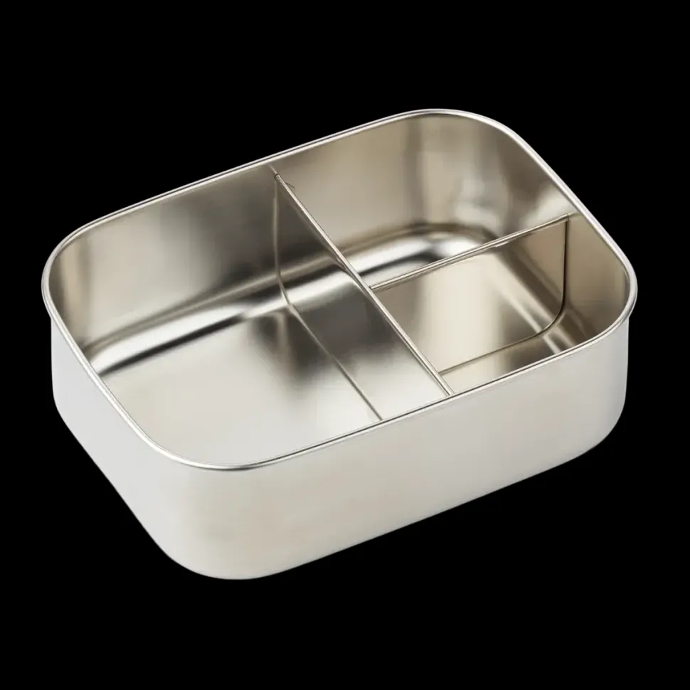 Fijne Roestvrijstalen Broodtrommel Van Liewood. Met 3 Vaste Compartimenten En Een Siliconen Deksel Met Leuke Print. Vaatwasserbestendig.