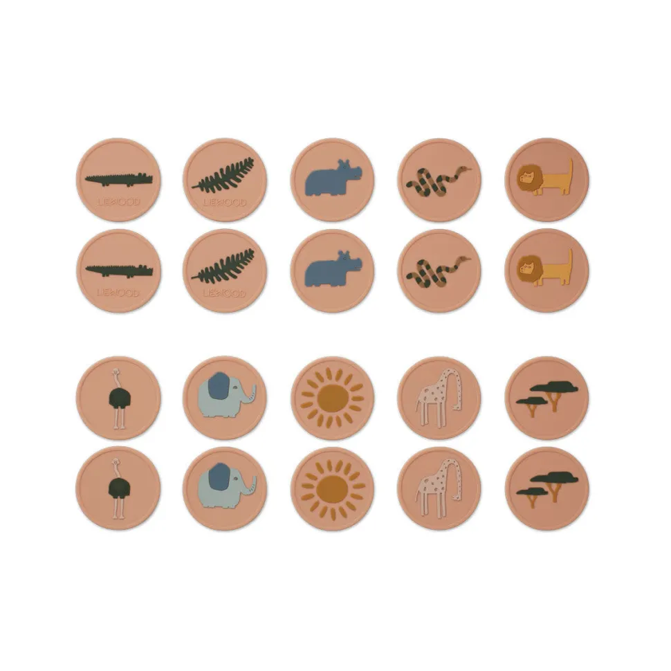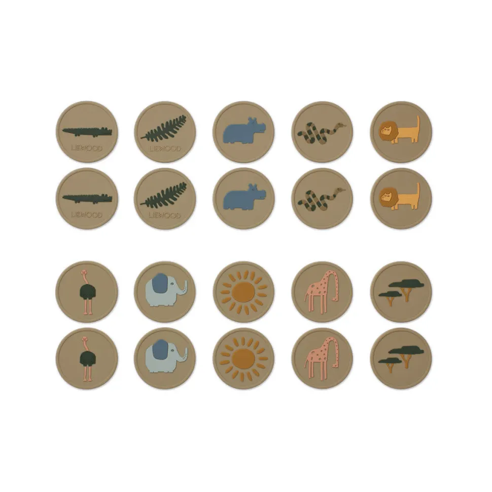 Super Leuk Memory Spel Met 20 Siliconen Fiches. De Leuke Safari Tekeningen Maken Ieder Kind Enthousiast! Onbreekbaar En Een Ouderwets Vermakelijk Spel.