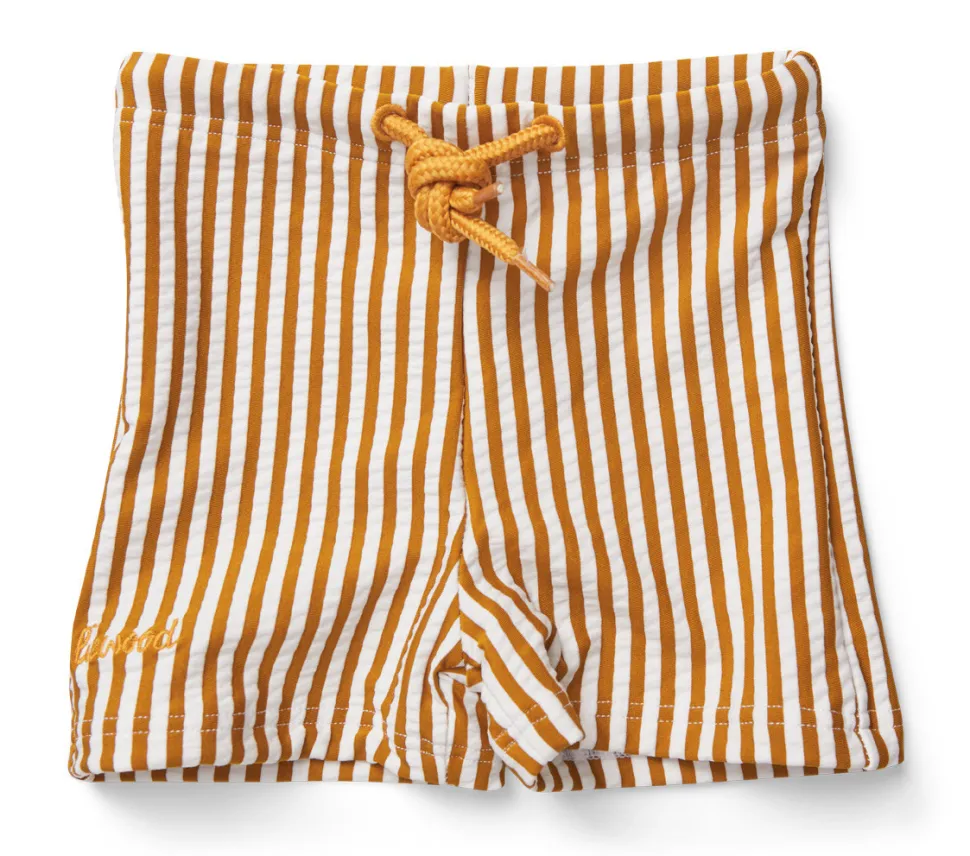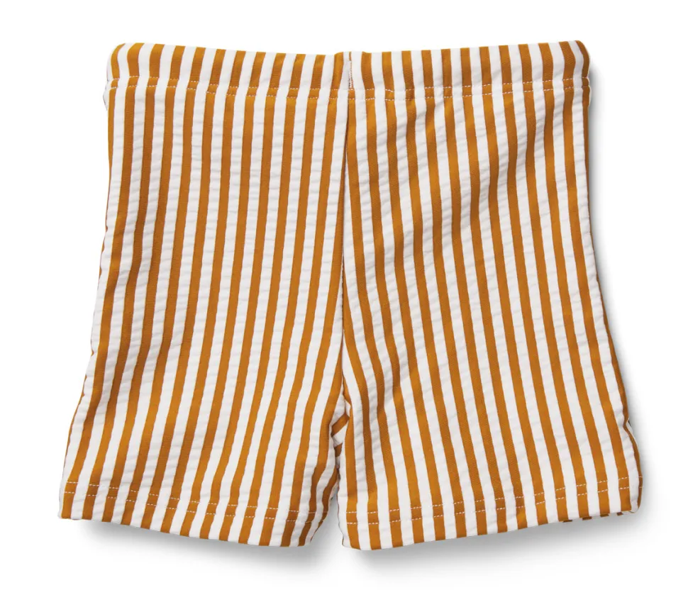 Spring In De Zee Met Een Heerlijk Zwembroekje Van Liewood Met Upf50+ Bescherming. Otto Swimpants Is Geel Met Witte Streepjes En Kan Aangesnoerd Worden Met Een Koordje.