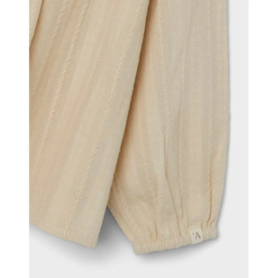 Prachtige Licht Beige Blouse Met De Mooiste Uitgewerkte Patronen In De Stof. Op De Voorkant Een Mooie Ruffle Versiering En Ook Lieve Houten Knoopjes.