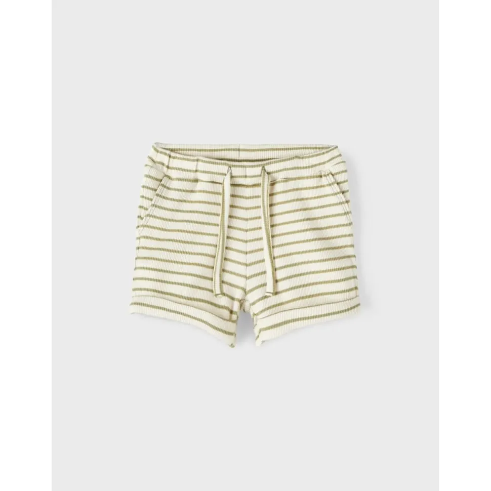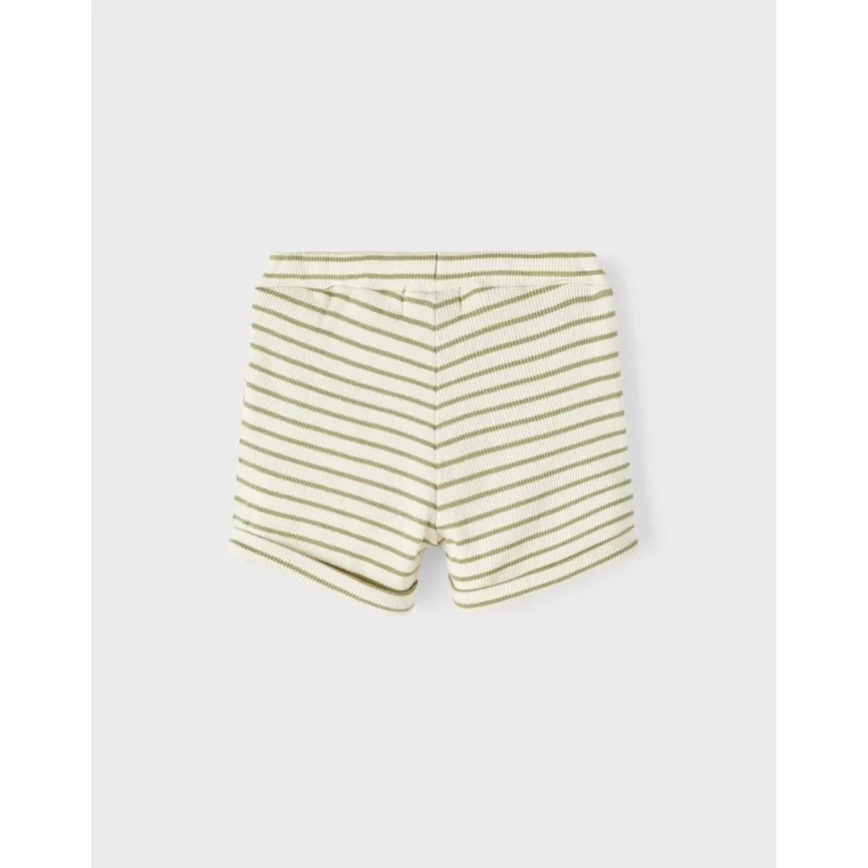 Mooie Korte Broek In Zachte Fine Rib Stof. Met Streepjes In Frisse Sage Groene Kleur. Elastieken Boord Met Verstel Systeem En Sier Touwtjes.