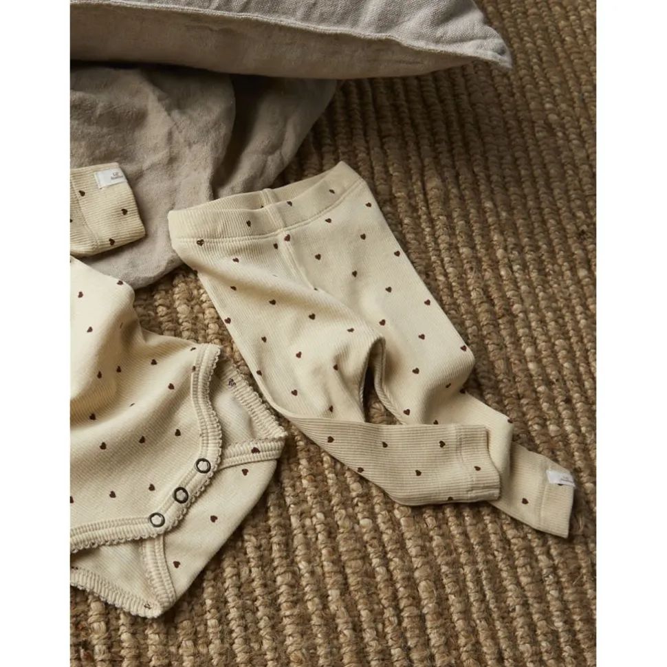Super Schattige Fine Rib Legging Met Hartjes Printje. Onwijs Leuk Met Brick Kleurige Blouse, Of Met De Matching Hartjes Romper.