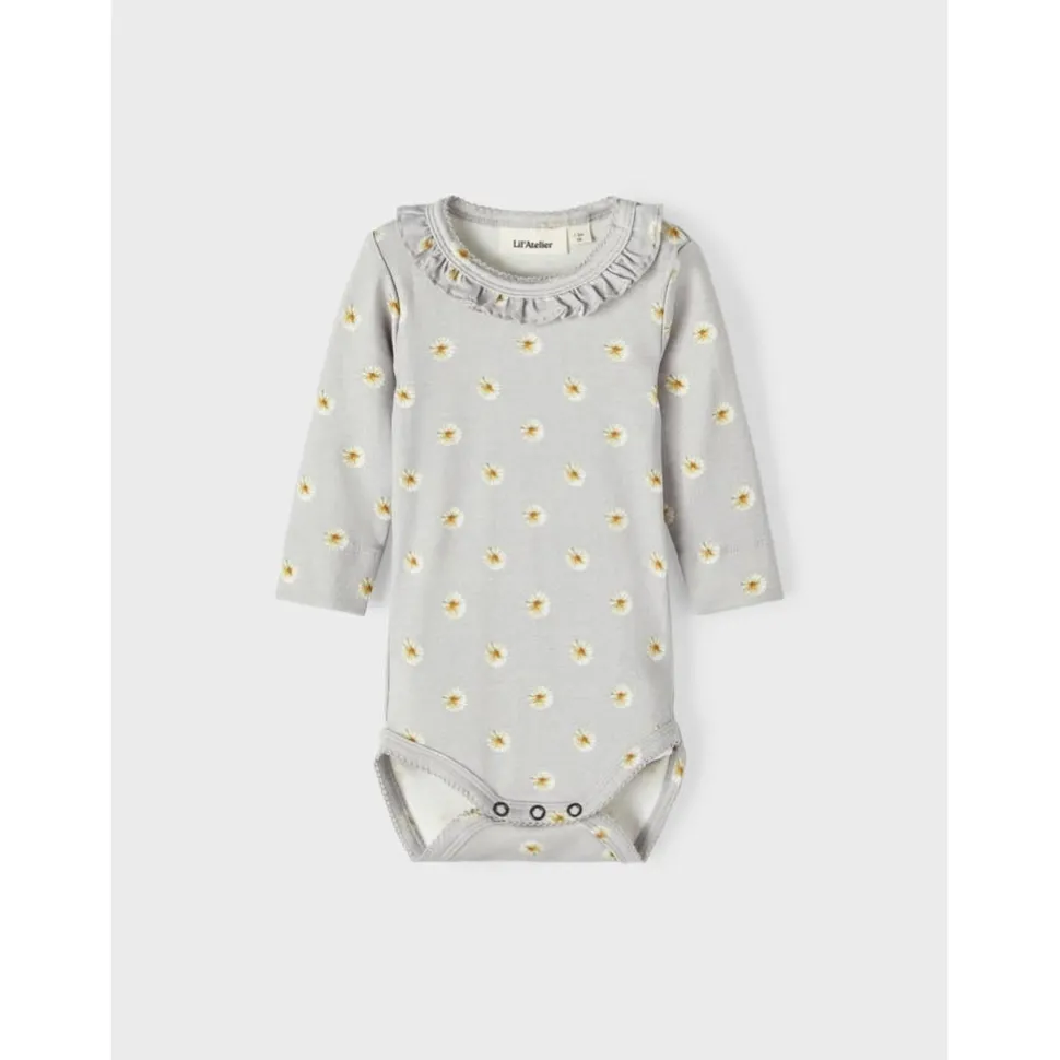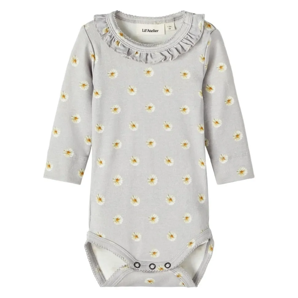 Mooie Romper Voor Meisjes In Lichtblauwe Kleur Met Wit Bloemetje. De Romper Heeft Een Frill Kraagje En De Stretchy Stof Is Comfortabel En Gaat Heel Lang Mee.