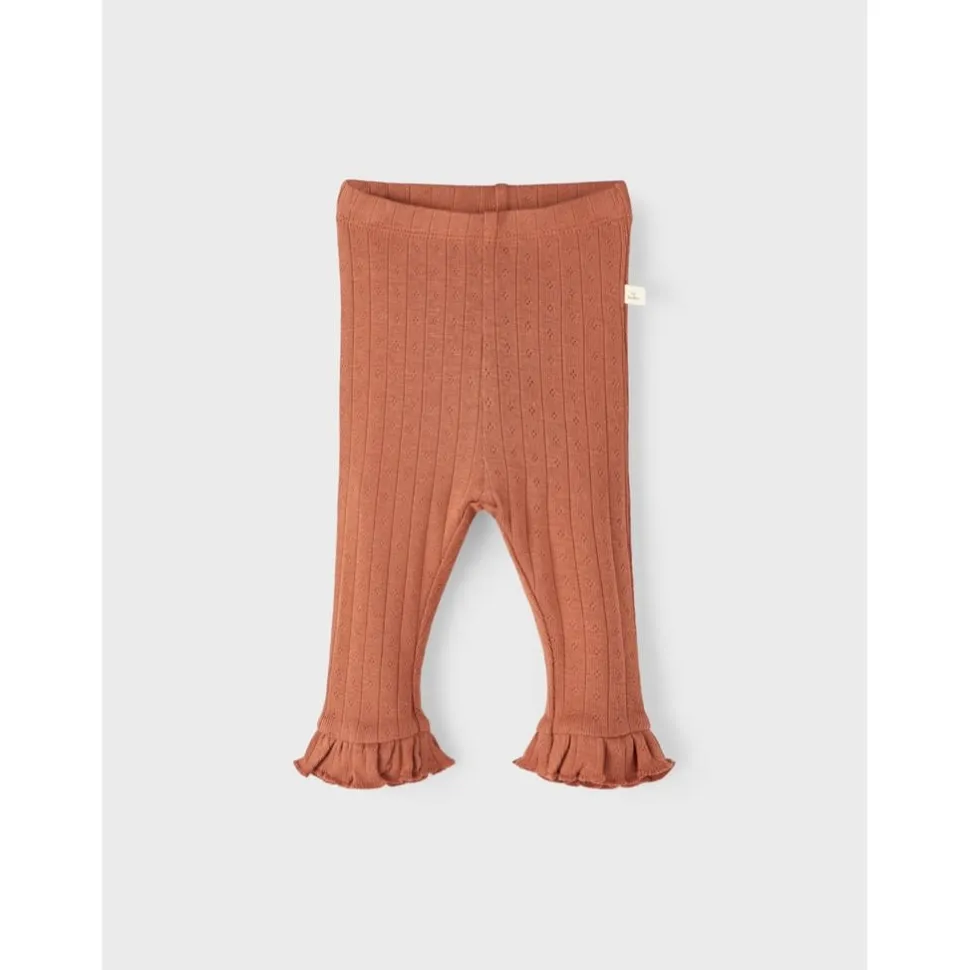 Lieve Legging Voor De Kleintjes Van Pointelle Stofje. Een Heerlijk Zacht Katoenen Broekje Met Lekkere Stretch. Onderaan De Pijpen Zit Een Schattige Flare.