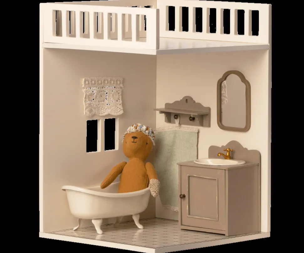The Maileg Miniature Bathroom Comes With A Nicely Decorated Floor. In The Box You Will Find 2 Small Curtains That Will Keep Your Maileg Friends Private.