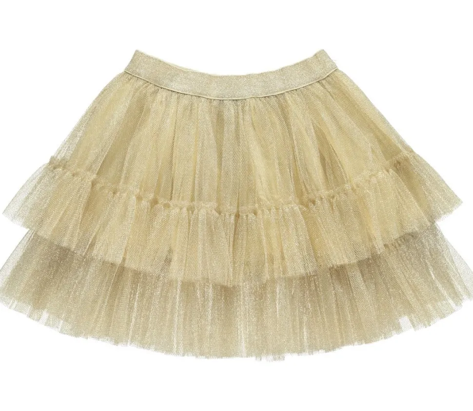 - Goudkleurige Tule Rok Met Voering En Ruches