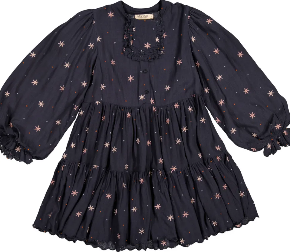 Prachtige Jurk Met Zoveel Mooie Details. Puffy Mouwen, Sterretjes Embroidery.. Het Sier Lapje Op De Borst Is Eventueel Ook Naar Binnen Te Dragen.