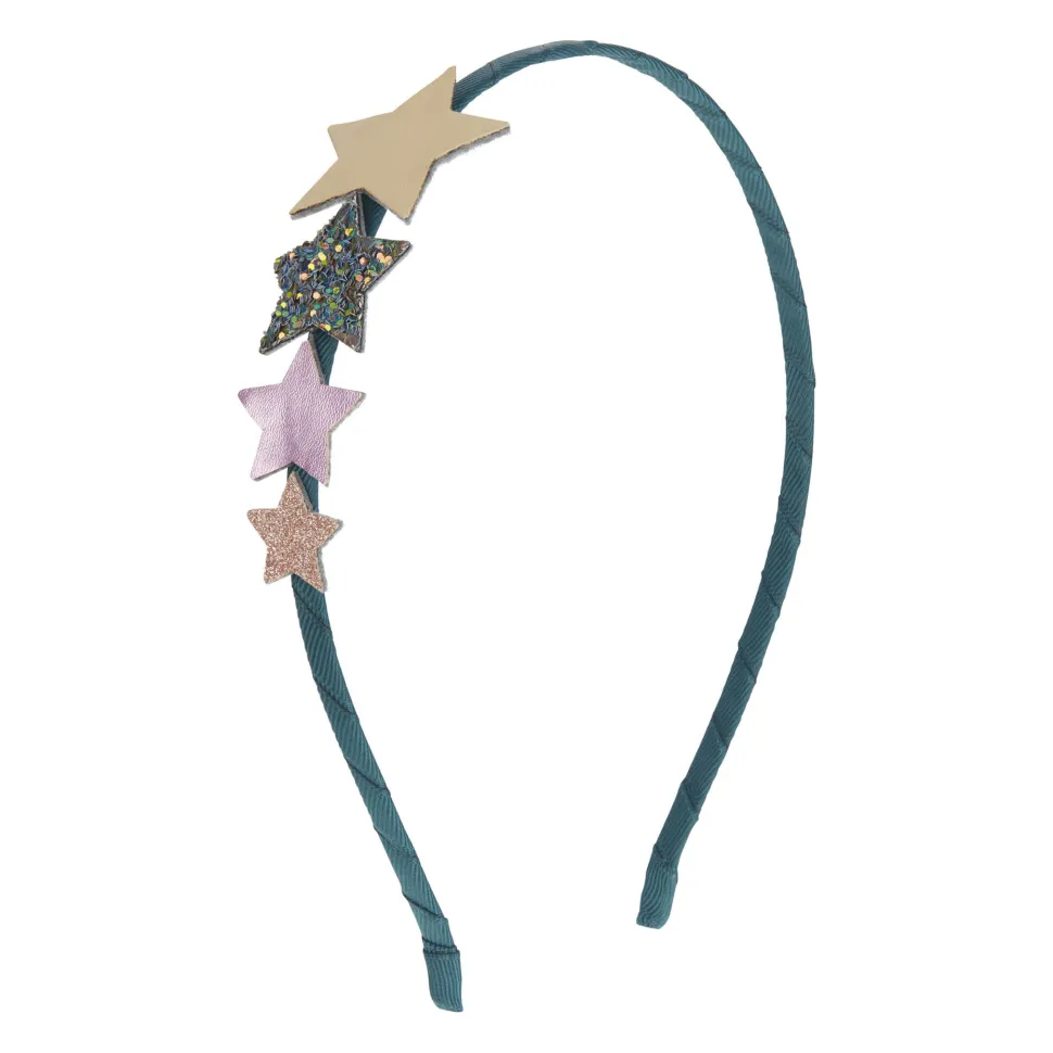 Te Gekke Enkele Haarband Van Mimi & Lula. De Haarband Is Omlegd Met Groen Band En Er Zitten Prachtige Sterren In Verschillende Kleuren Op. Hoe Leuk Voor De Feestdagen!