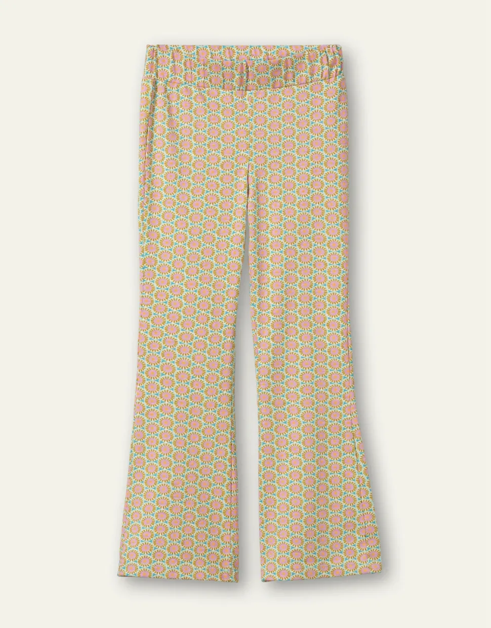 Te Gekke Slim Fit Flared Broek Van Oilily. Met Een Vrolijk Patroon Met Roze, Groen En Blauw Erin. Makkelijk Te Combineren. Met Zakjes.