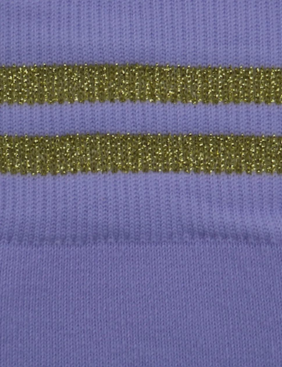 Hockeysok In Mooie Lila Kleur En Gouden Glitter Randen In De Boord. Deze Super Hippe Hockeysok Heeft De Perfecte Pasvorm En Zal Door De Extra Elasticiteit Goed Aansluiten Op Het Been. Het Voetbed Is Gemaakt Van Polycolon Dat Er Voor Zorgt Dat Jouw Voeten Heerlijk Cool Blijven. Bij Twijfel Over De Maat: Size Up.
