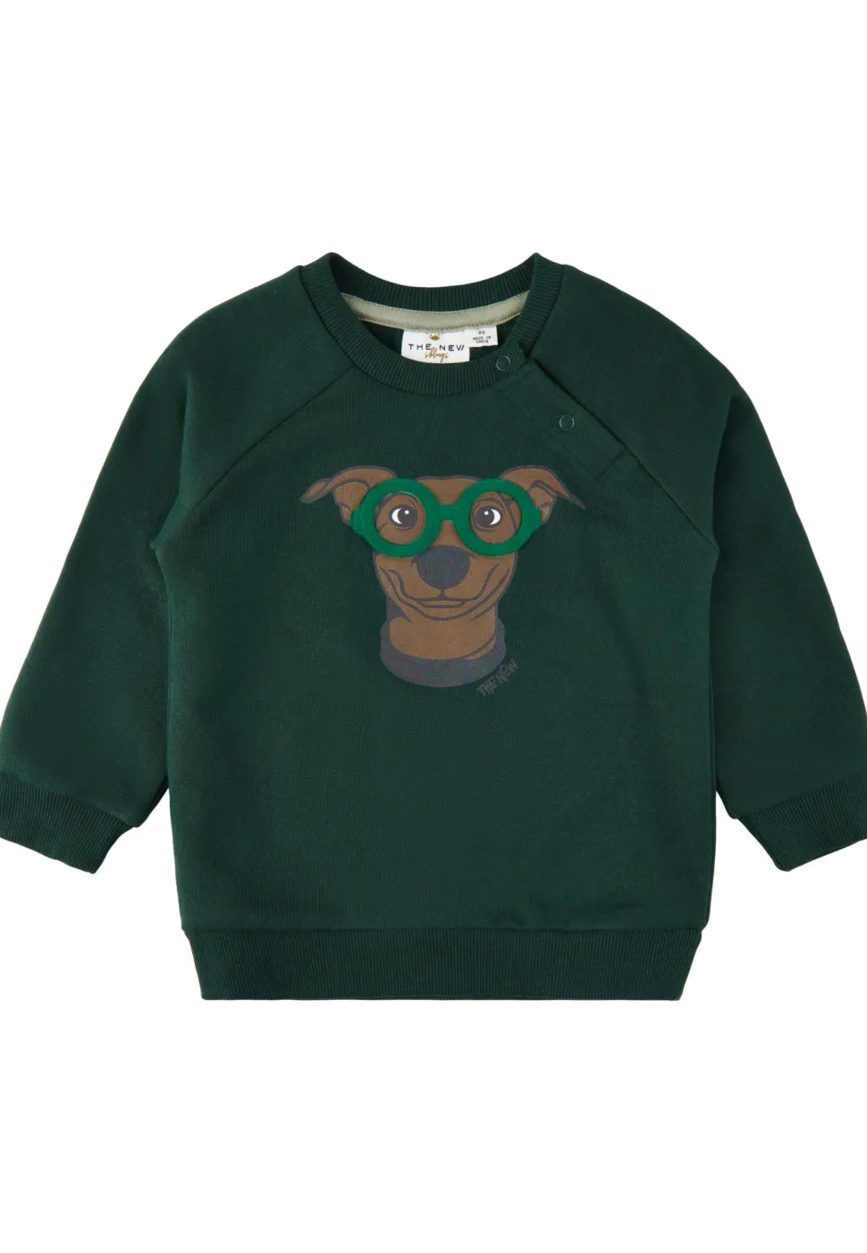 Hoe Leuk Is Deze Grappige Sweater In Mooie Groene Kleur, Met Print Van Een Vrolijk Hondje? Het Groene Brilletje Dat De Hond Draagt Is Op De Trui Geborduurd.