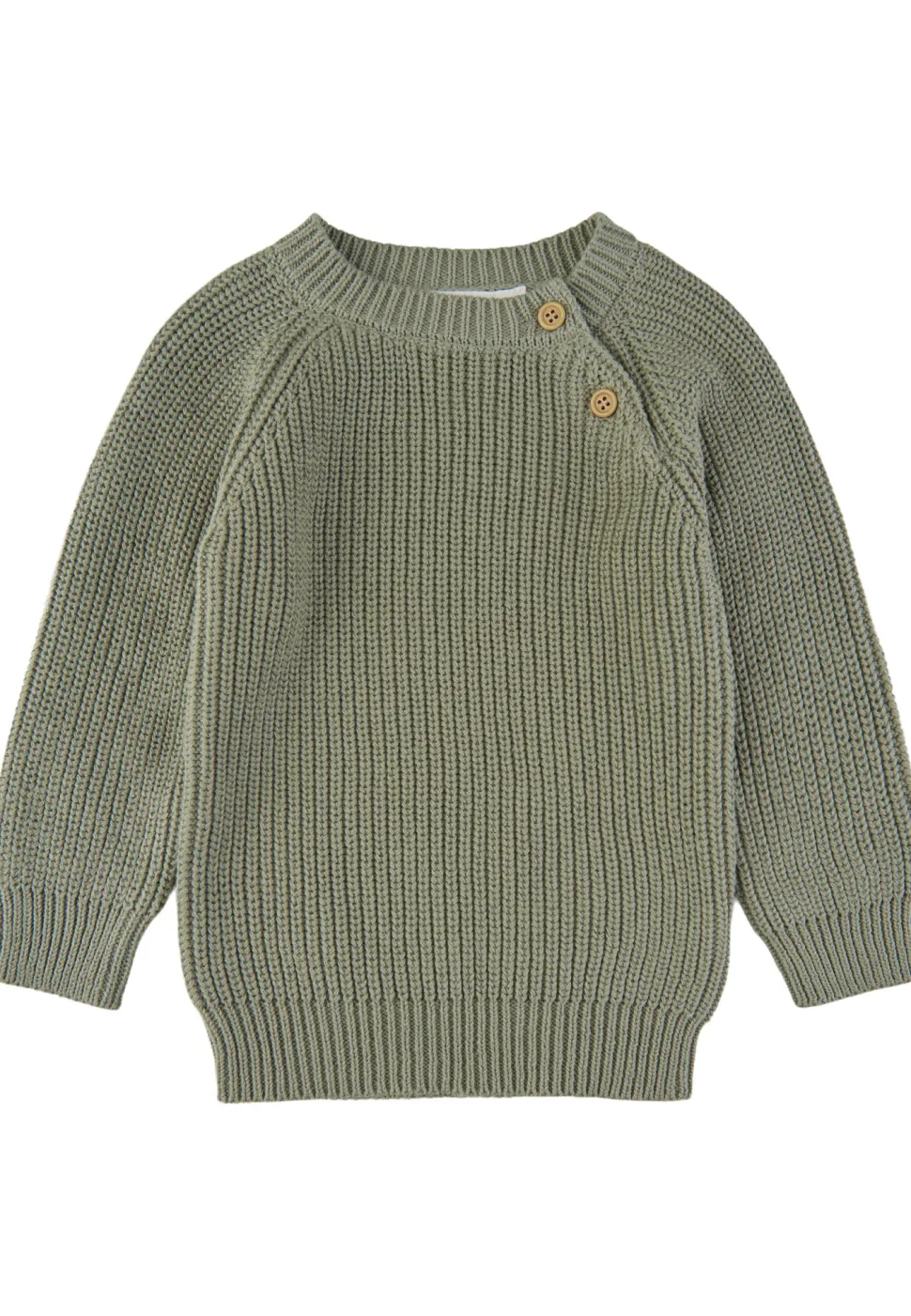 Super Mooie Zachte Gebreide Trui. Deze Kit Sweater Heeft De Mooie Kleur Seagrass En Heeft Schuin Voor Bij De Hals Twee Houten Knoopjes.