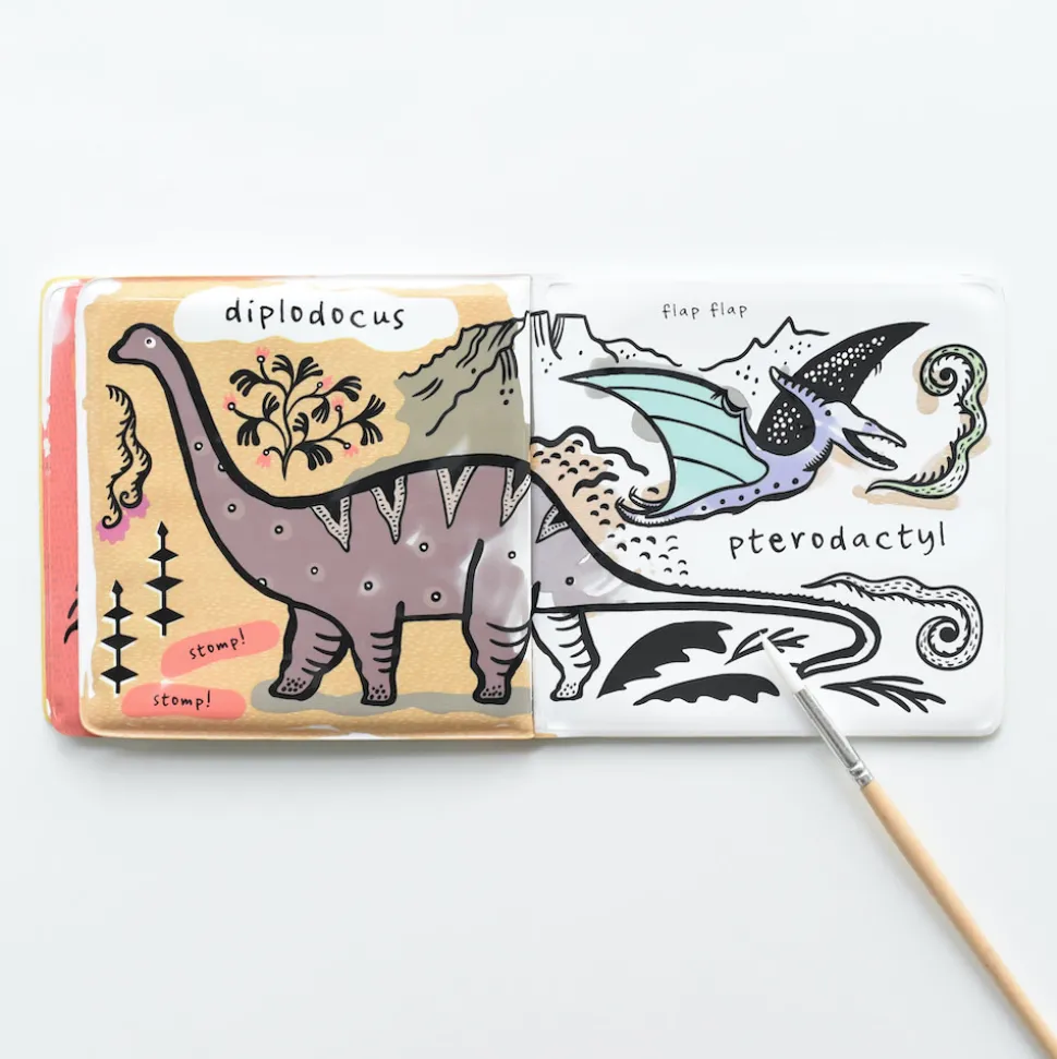 Super Leuk Zwart-Wit Badboekje Voor Baby’S En Kindjes Van Wee Gallery. Maar….. Doe Hem In Het Water En Hij Veranderd Magisch In Een Gekleurd Boekje! Kijk Naar De Prachtige Dino’S En Leer Alle Namen Van Deze Stoere Vriendjes.